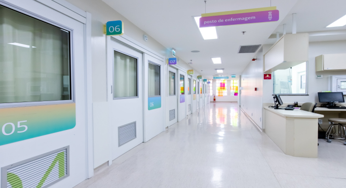 Ambientes confortáveis e climatizados, acomodação privativa, equipada com TV e poltrona auxiliar, possibilitando a permanência de um acompanhante durante o tratamento;
